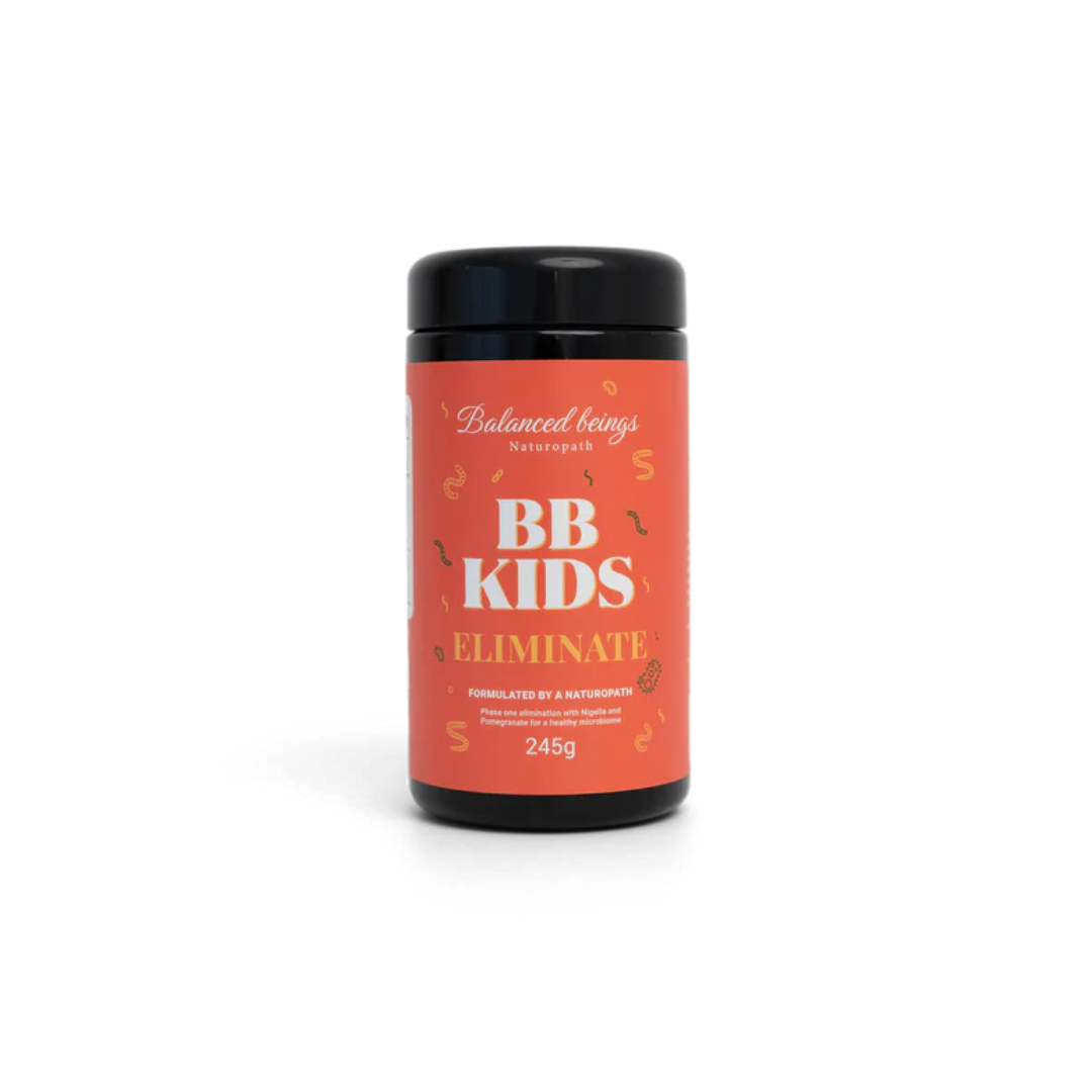 BB Kids Eliminate is a naturopathic formulated product for children; with ingredients such as charcoal, nigella, pomegranate and turmeric which are scientifically found to support heavy metal elimination, parasitic clearance, candida and worm elimination, harmful bacteria clearance and lipopolysaccharide detoxification.
